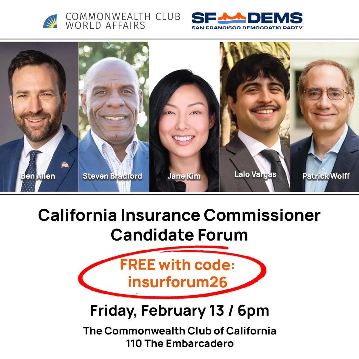 Candidates for Insurance Commissioner will face tough questions about wildfire coverage, medical insurance costs, climate risks, and whether anyone's actually looking out for consumers. This is your chance to see who deserves your vote.
